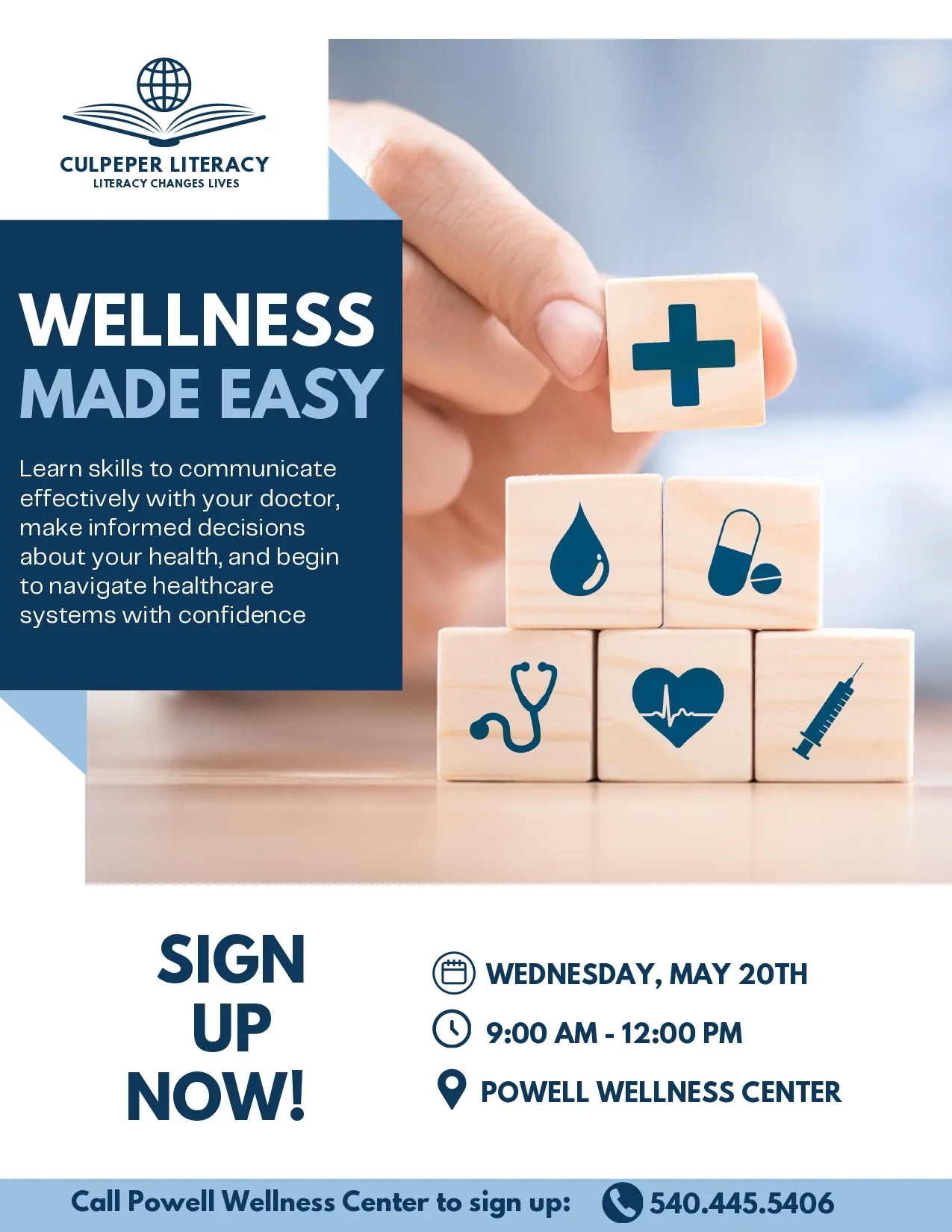 Register for “Wellness Made Easy” to build the skills and confidence you need to take charge of your health. In this welcoming, easy-to-understand program, you’ll learn how to read medication labels, understand doctor’s instructions, ask the right questions, and navigate the healthcare system. Whether you’re managing your own health or supporting a loved one, this class empowers you with practical knowledge to make informed decisions and improve well-being—no medical background needed. The program is free & open to the public.