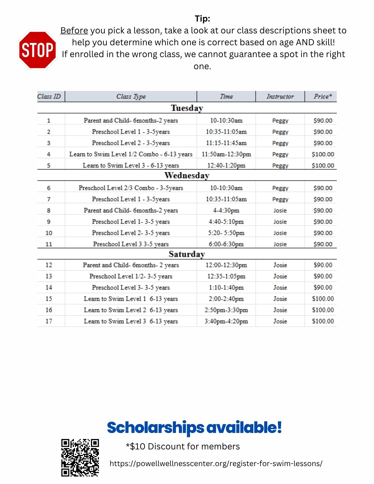 Click here for SWIM LESSON CLASS DESCRIPTIONS/WHICH CLASS IS RIGHT FOR YOU